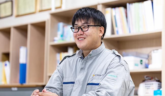 職場は成長意欲を持った前向きな人が多く、とても明るい雰囲気。そうした影響もあって、入社後、2年間で2級土木施工管理技士、高圧ガス製造保安責任者など、建築、土木分野で活躍できる10以上の資格を取得することができました。今後も努力を重ね、いつか部門を牽引していく存在になることが目標です。
